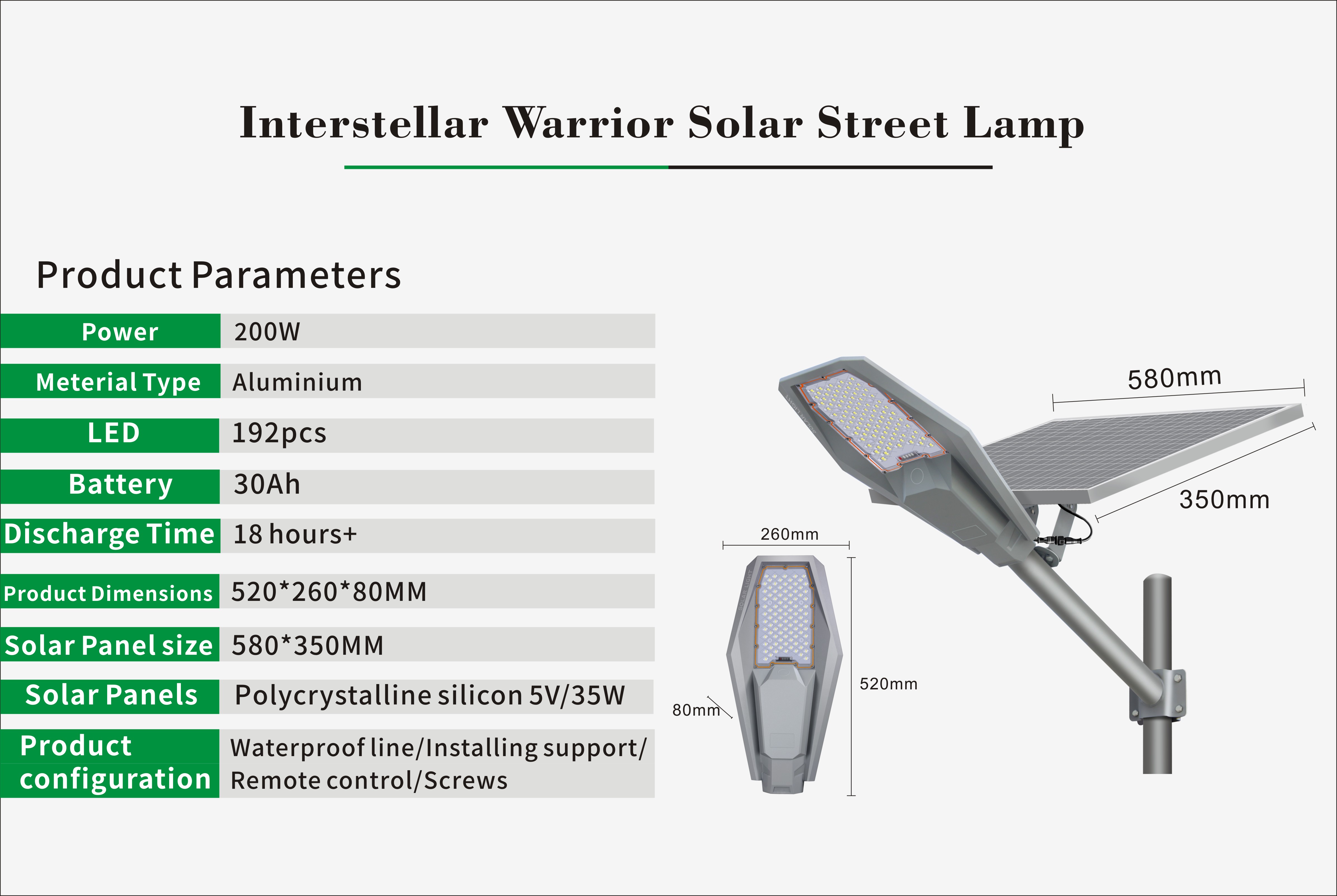 Product Configuration: Waterproof Line/U Frame/Lamp Arm/Remote Controller/Screw