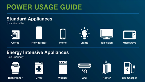 Lowering energy use during an outage will extend the amount of time your battery will be able to provide power. The best way to do this is to limit the use of non-essential or energy-intensive appliances like air conditioners, electric heaters, and pool pumps.